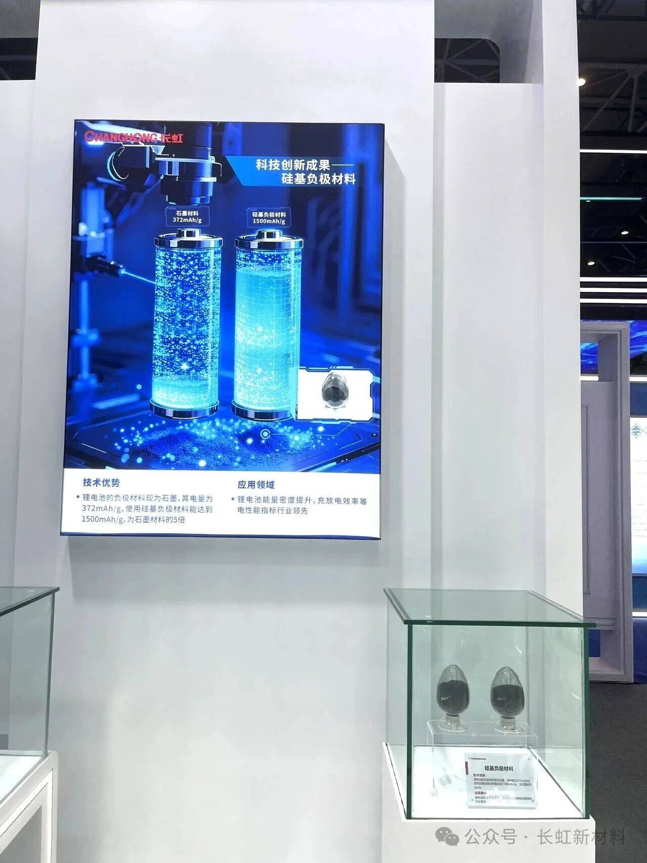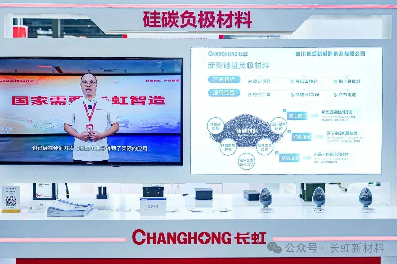 目前,长虹新材料重点布局比容量1200~2000mAh/g的硅基负极材料,已经成功开发出了“新型研磨助剂+化学研磨”工艺制备小颗粒尺寸纳米硅、“原位多级包覆”工艺制备高性能、低成本硅碳等核心技术。历经一年多调试的千吨级硅碳负极材料产线可满足不同规格产品的生产,目前正在批量供货。