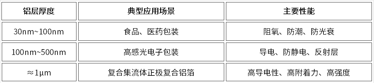 在100~500nm范围的铝层下,材料获得优异的反射性与导电性,用于芯片、传感器等封装领域。