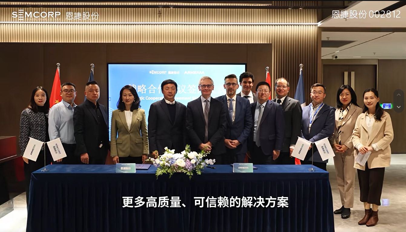 • 阿科玛将为恩捷提供高附加值的解决方案和技术支持,助力恩捷的高性能隔膜在包括电动汽车、能源存储系统和消费电子等在内的全球关键市场的推广。