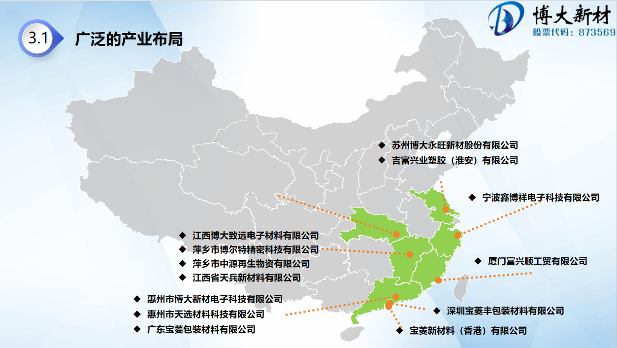 经过多年发展,已形成与IT、光电产品全面配套的电子包装防护产品生产基地,在江西、惠州、宁波、武汉、厦门、深圳、香港均建有分公司。
